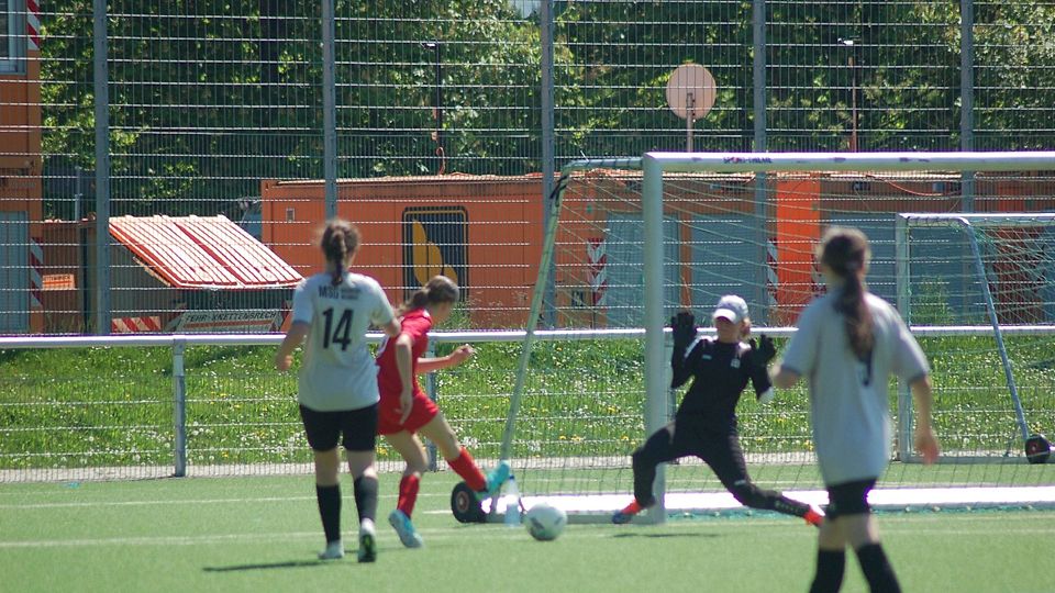 Auch im zweiten Saisonspiel der B-Juniorinnen Verbandsliga Nord netzte Janine Dülger (blaues Trikot) für die TuS Viktoria Großenglis ein.