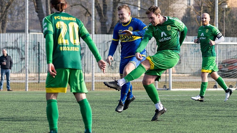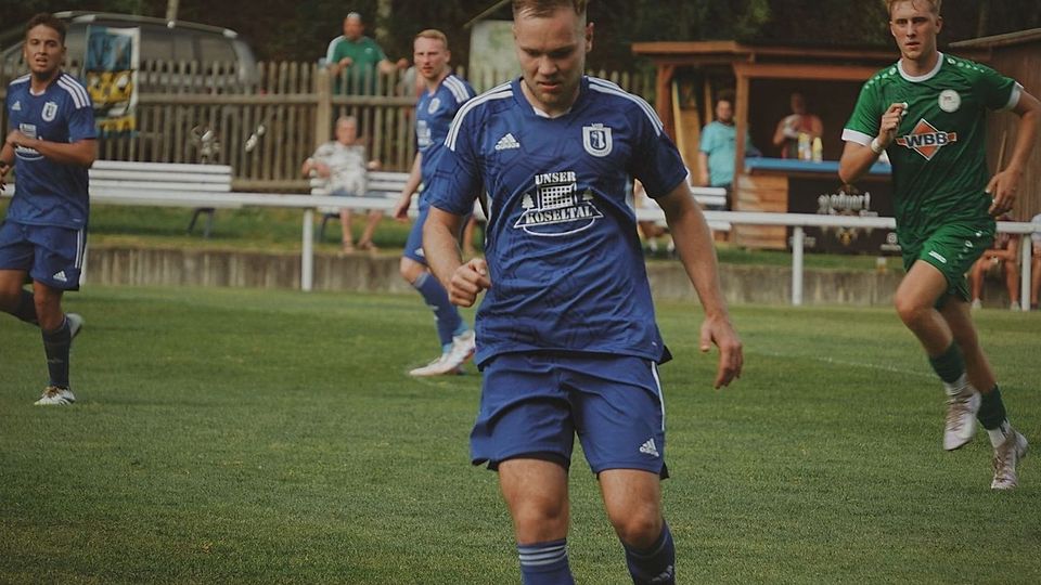 Eine wichtige Säule im Spiel des SV Eintracht Eisenberg. Kapitän Marius Mücke (blaues Trikot).