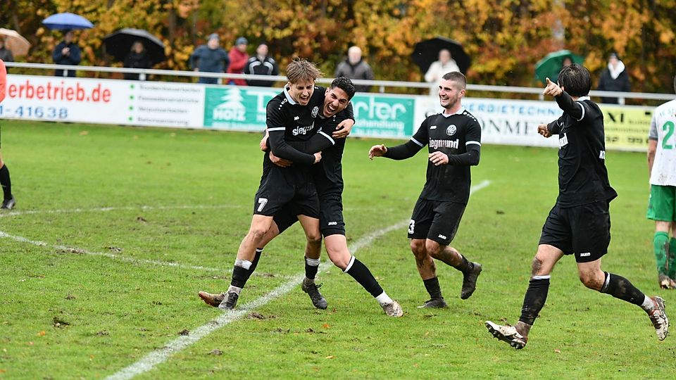 Nikolas Leibbrandt (Mitte) schoss den VfB Durach zum Derbysieg beim 1. FC Sonthofen.
