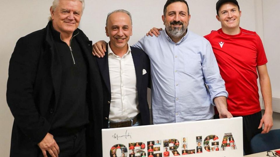 Luca Stellwagen (m.) bei seiner Vorstellung mit Hakan Atik (l.) und Ali Ibrahimaj.
