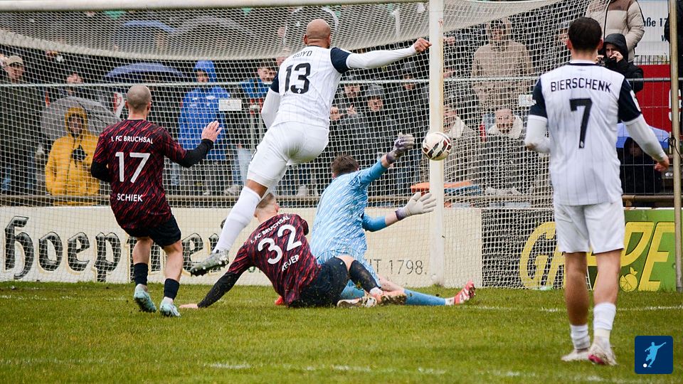 Anschluss Treffer für den 1. FC Bruchsal. Jimmy Marton trifft zum 1:2