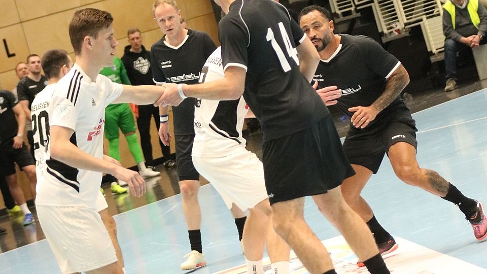 Scholl erkämpft den Ball stark gegen Engelhardt und Schmidt schiebt in der Mitte ein.
