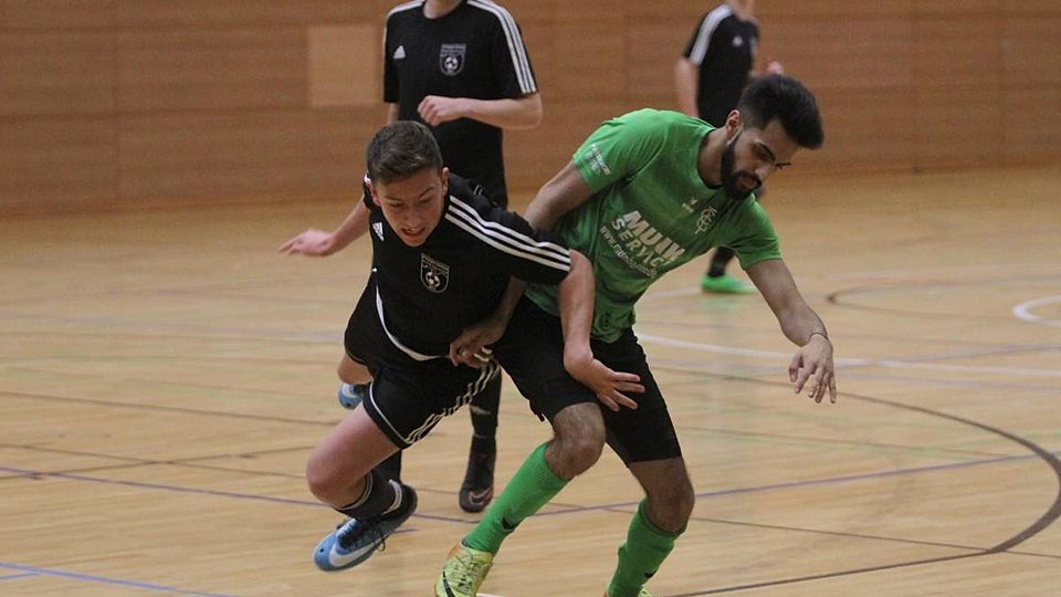 Sebastian Hertle (links) hat die Lücke gefunden und schießt die A-Junioren des TSV Nördlingen zum schwäbischen Hallentitel.