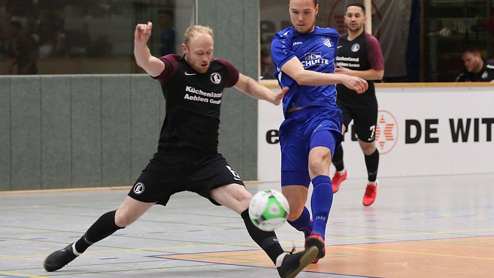 Auch in der Halle trifft er: Stürmer Sascha Wald (am Ball) und Spelle sind weiter, Union Lohne schied aus. Foto: Werner Scholz