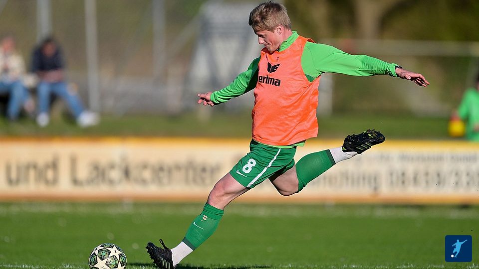 Schnelle Führung für Rain: einen Schuss wehrt der Torhüter nach vorne ab, dort steht er und zieht aus 12 Meter ab zum 1:0 für Rain