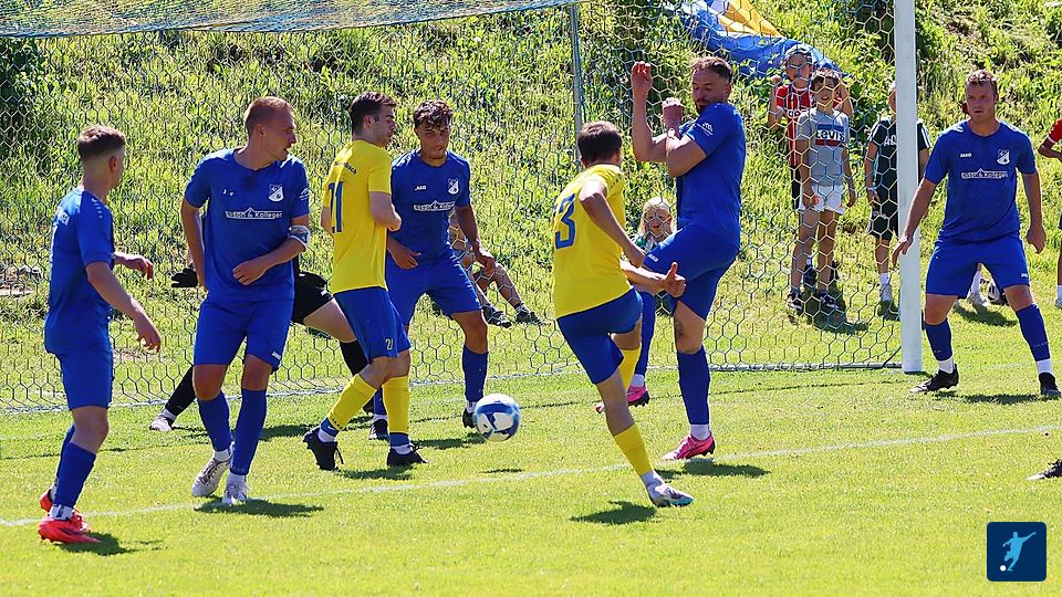 Führungstreffer für die SGR. Nach einer Flanke steigt Schneider am langen Eck hoch und köpft zum 2:1 ein.