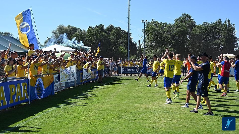 Ecke von rechts, Mayer köpft die SG in Führung und dreht jubelnd ab Richtung Fankurve die sich hinter dem Tor im Schatten angesiedelt hat.