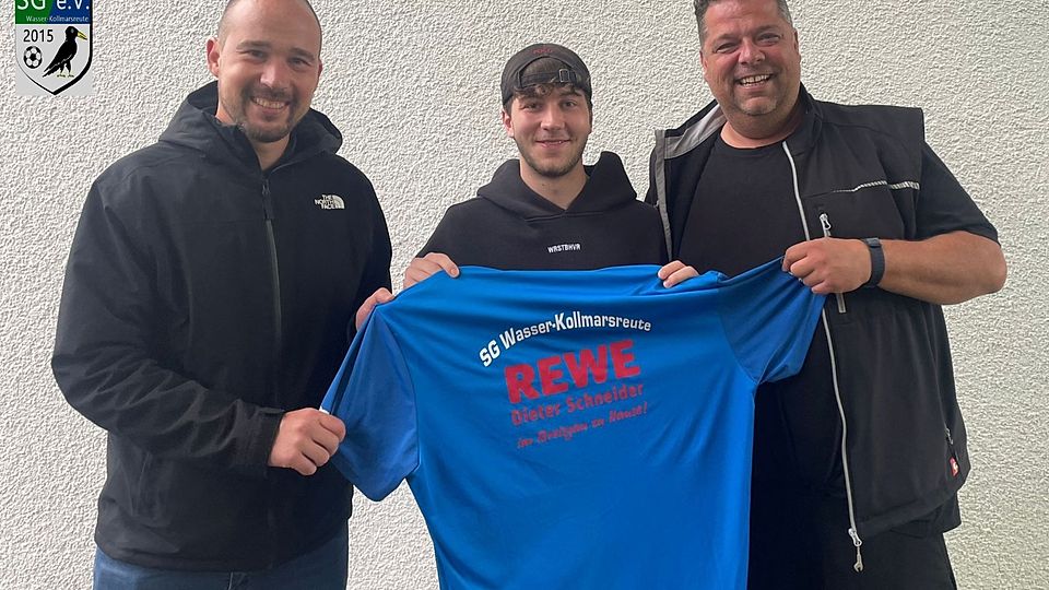 Rückkehrer Sarja Njie (Mitte) mit Sandro Klaus (links) und Rudi Kaiser (rechts) aus der sportlichen Leitung des SVB. | Foto: SV Burkheim
