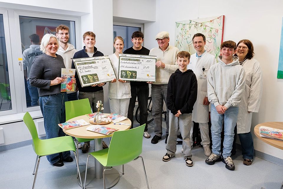Am 1. Januar 2026 wurde im Gievenbecker Ausbildungsbereich nicht nur feierlich das neue Jahr eingeläutet, sondern auch Fußball für den guten Zweck gespielt. Beim vom 1.FC Gievenbeck organisierten U13- und U15-Benefizcup in der Halle Berg Fidel spielten insgesamt 15 Jugendmannschaften Spendengelder in erfreulicher Höhe ein, welche in der vergangenen Woche zugunsten der Kinderkrebshilfe im Uniklinikum Münster übergeben wurden.