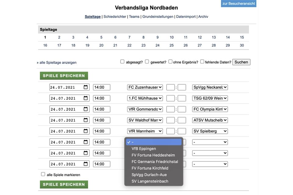 2. Ligaverwalter können Spielpläne nun einfacher manuell anlegen