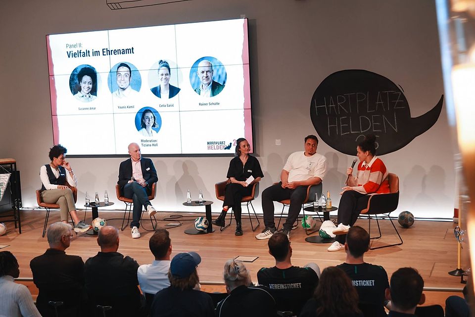 Nachmittags fanden zwei Podien statt. Auf dem ersten diskutierten Arianit Besiri (Vize-Präsident Fußballverband Rheinland/Bürgermeister Morbach), Tina Winklmann (Sportpolitische Sprecherin der Grünen) und Michael Franke (Vorstand FT Gern München) über Mitsprache für Amateurvereine, moderiert von Journalist und Buchautor Christoph Ruf. Auf dem zweiten stellten sich Susanne Amar (Expertin für Kommunikation im Jugendfußball), Younis Kamil (Universität Brüssel/ROOTS Against Racism), Celia Šašić (DFB-Vizepräsidentin für Gleichstellung und Diversität) und Rainer Schütte (Präsident Arminia Bielefeld), den Fragen der Moderatorin Tiziana Höll über Vielfalt im Ehrenamt.