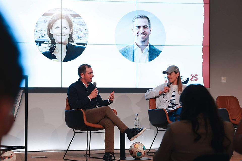 Anschließend interviewte die ZDF-Moderatorin Katrin Müller-Hohenstein den deutschen Ehrenspielführer Philipp Lahm, der zurzeit Co-Trainer der D-Jugend der FT Gern ist. Lahm unterhält selbst, gemeinsam mit Celia Šašić, eine Initiative für Amateurfußball: treffpunkt verein.
