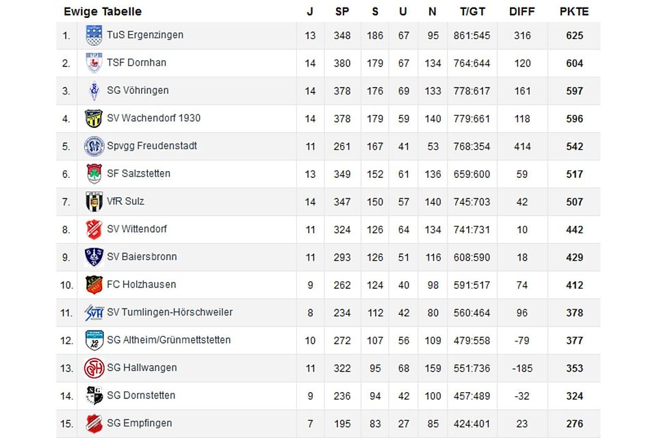 Bezirksliga Nördlicher Schwarzwald: Ewige FuPa-Tabelle