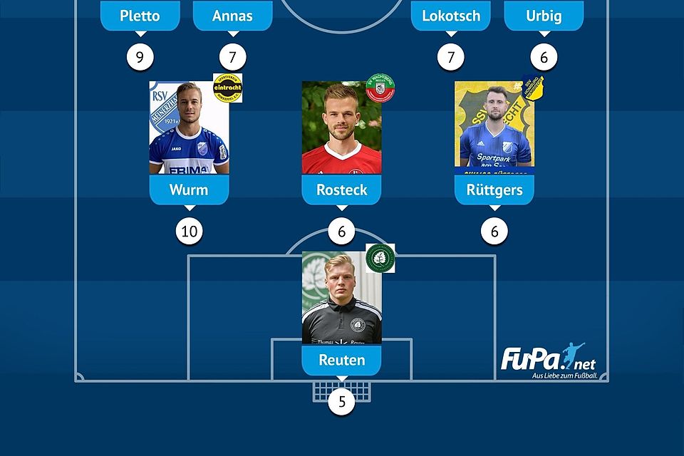 Von der SpVg Porz, die lange um den Aufstieg kämpfte, am Ende aber abreißen ließ, ist Gero Pletto dabei. Daneben steht Routinier Nicolai Annas vom SV Schlebusch. In der kommenden Saison wird Annas in der Kreisliga B für den SV Adler Dellbrück auflaufen. Vor allem als Vorlagengeber glänzte Nils Lokotsch vom TuS Oberpleis. 14 Treffer legte der 24-Jährige vor. Justus Urbig ist der zweite Hohenlind-Akteur in der Jahres-Elf.