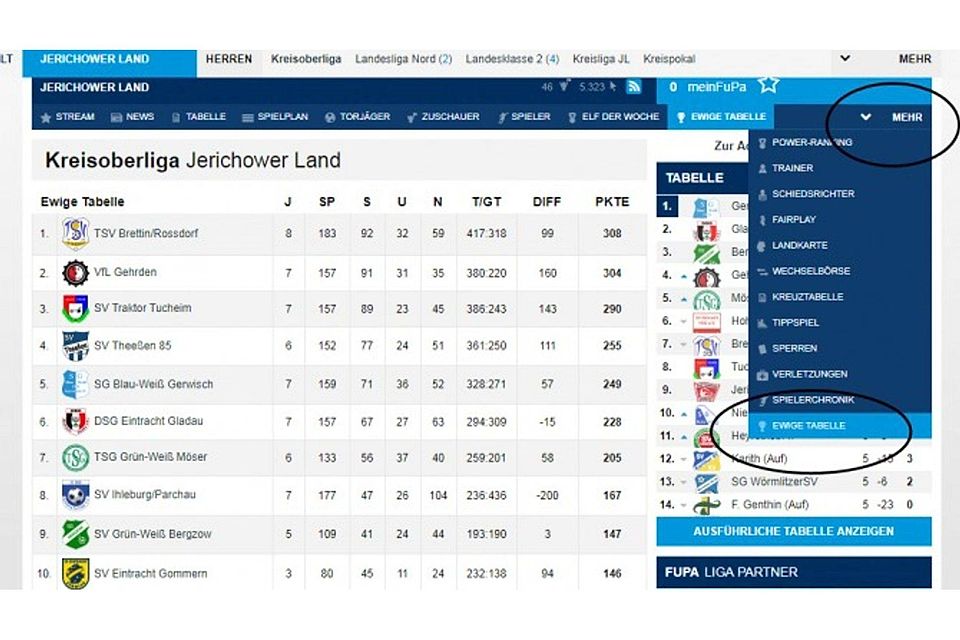 FuPa-Feature: Ewige Tabelle