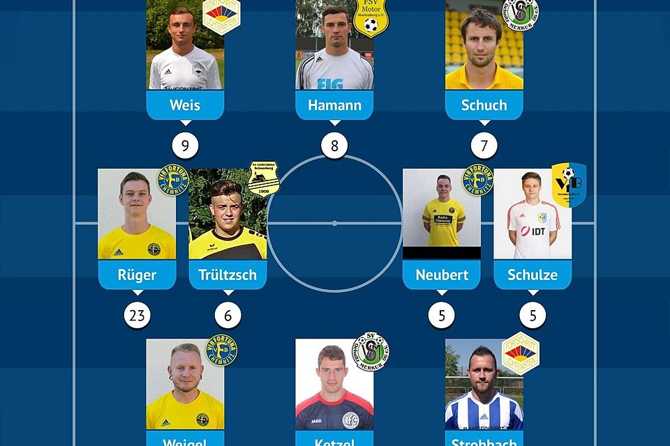 In vorderster Spitze stürmt in unserer Auswahl unter anderem Dominik Weis vom SSV Fortschritt Lichstenstein, der zehn Mal in 21 Partien einzunetzen wusste und ganze neun Mal von euch in die ELF DER WOCHE gevotet wurde.