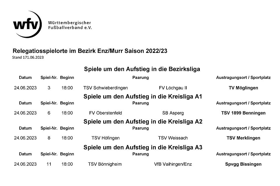 Der Fußballbezirk Enz/Murr teilt das Folgende mit: