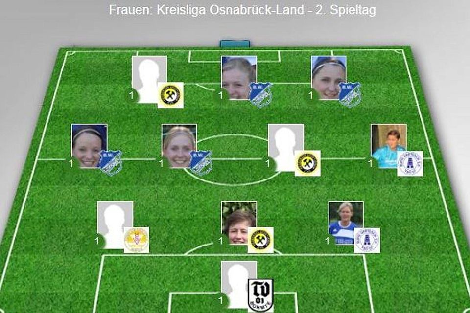 In der Kreisliga ist zum ersten Mal eine Elf der Woche zustande gekommen. Die Damen von BW Schwege sahnte gleich vier Plätze in der Auswahl ab. Mit ihrem 6:3-Heimsieg gegen Bohmte haben sich die Blau-Weißen auf den vierten Platz katapultiert. Mehrfach vertreten ist auch der Piesberger SV (4:0 gegen Dodesheide) und Burg Gretesch II (4:2 gegen Bramsche).