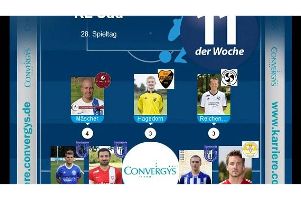 Die "Elf der Woche" aus folgenden Ligen in der Übersicht: Kreisliga Süd +++ 1. Kreisklasse Süd A +++ 1. Kreisklasse Süd B +++ 2. Kreisklasse Süd A+++ 3. Kreisklasse Süd A