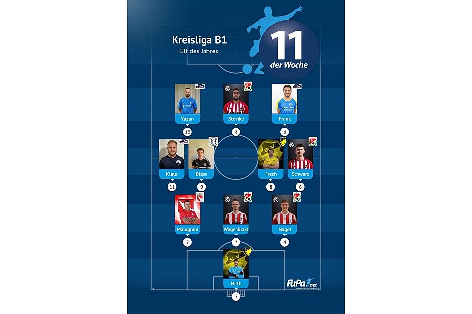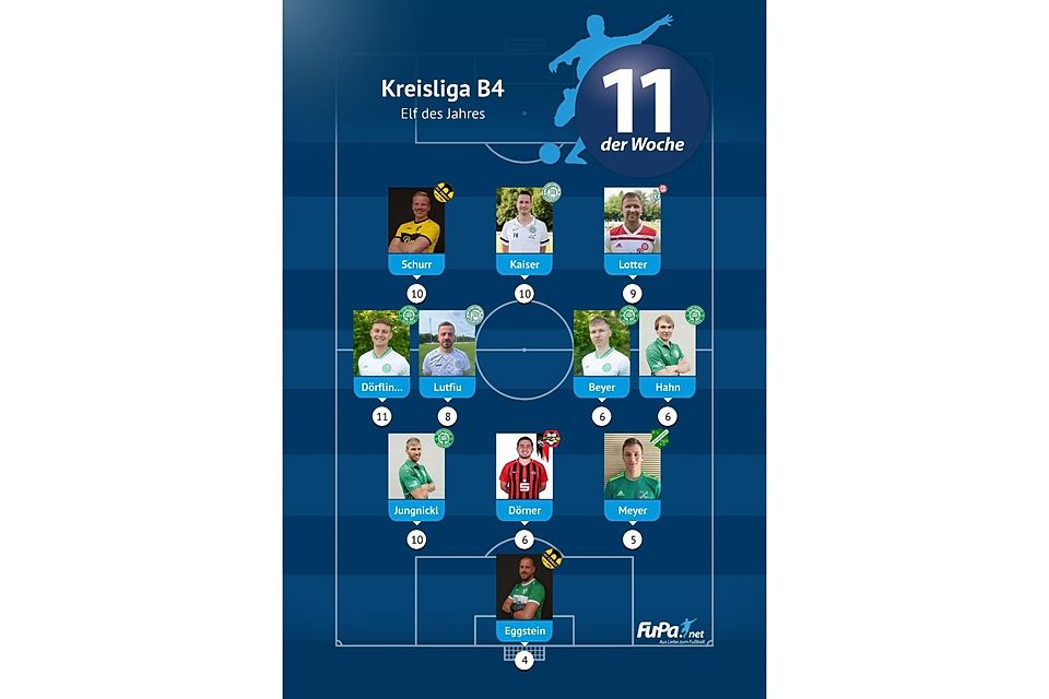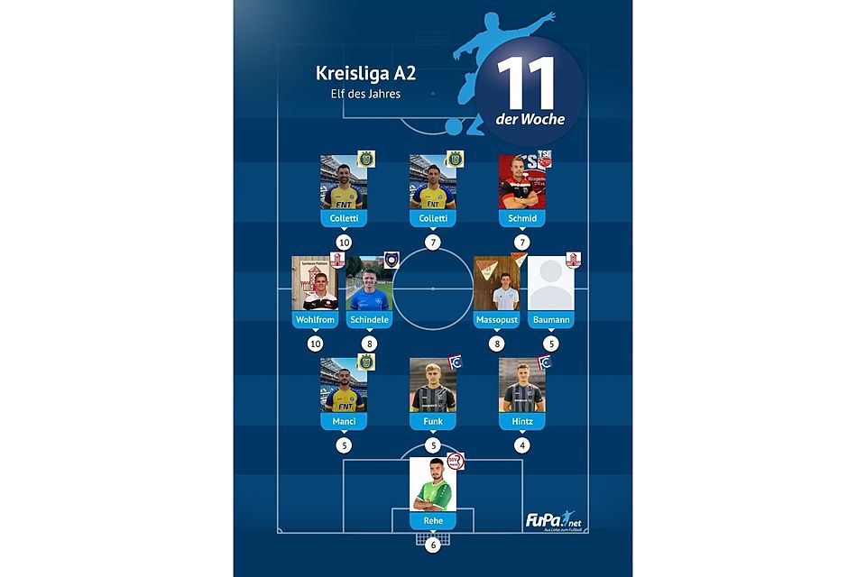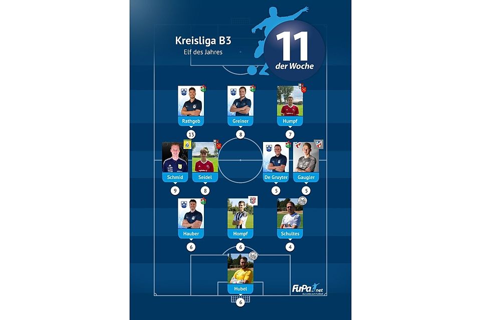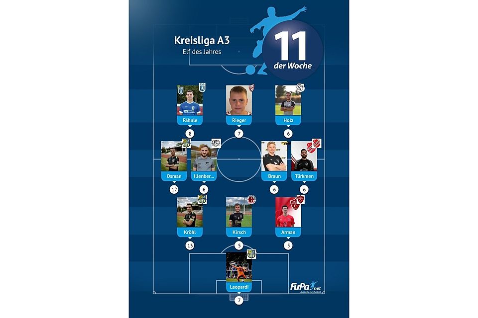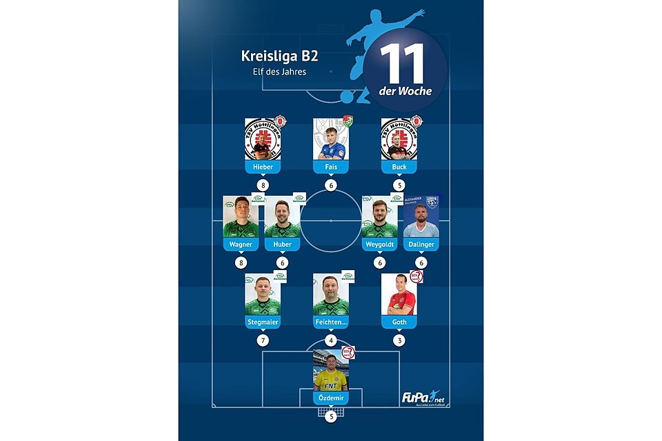 Woche für Woche präsentieren wir quer durch alle Ligen eine FuPa-Elf der Woche – sofern die Voraussetzungen durch eure Mitarbeit erfüllt sind. Dazu gehört vor allem, dass die Mannschaftsaufstellungen eingetragen sowie Tore und Assists eingepflegt wurden. Auch das Abstimmungsergebnis der FuPa-User für die besten Spieler des jeweiligen Teams fließen in die Auswertung ein.