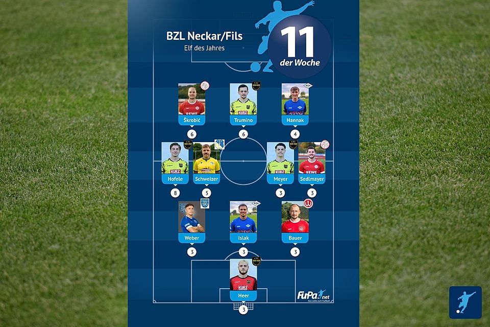 Woche für Woche präsentieren wir quer durch alle Ligen eine FuPa-Elf der Woche – sofern die Voraussetzungen durch eure Mitarbeit erfüllt sind. Dazu gehört vor allem, dass die Mannschaftsaufstellungen eingetragen sowie Tore und Assists eingepflegt wurden. Auch das Abstimmungsergebnis der FuPa-User für die besten Spieler des jeweiligen Teams fließen in die Auswertung ein.