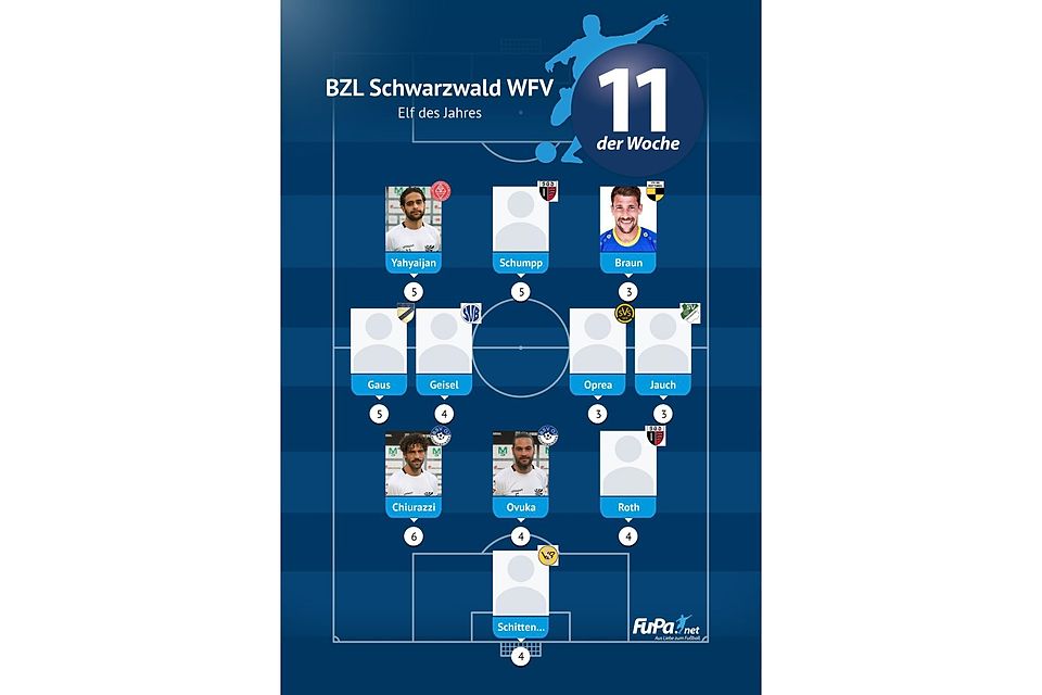 Christian Braun (FV Rottweil) drei Nominierungen zur Elf der Woche.