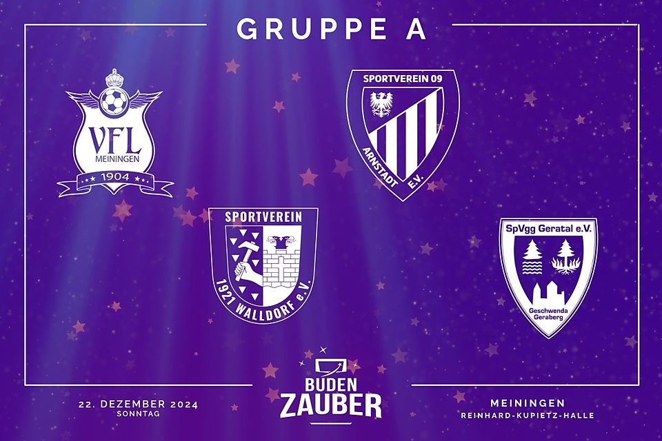 In der GRUPPE A bildet der VfL Meiningen 04 den Gruppenkopf und hat mit der SpVgg Geratal und dem SV 09 Arnstadt zwei Ligagegner mit dabei. Das Turnierauftaktspiel bestreitet der VfL zudem mit dem Derby gegen den SV Walldorf 1921. In der zweiten Turnierpartie steht dann das Ilmkreis-Duell zwischen dem SV 09 Arnstadt und der SpVgg Geratal auf dem Plan.