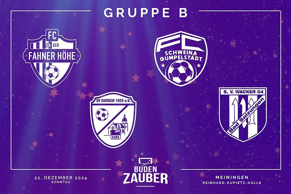 In GRUPPE B spielten gleich vier Vereine, die dem Fußballkreis Westthüringen angehören. Hier eröffnet der FC An der Fahner Höhe die Gruppenphase mit dem Duell gegen den Tabellenführer der Landesklasse 3 vom SV Borsch 1925. Beide Vereine sind erstmals beim Budenzauber dabei. Im zweiten Gruppenspiel dieser Vorrundenstaffel kommt es zum Derby zwischen FC Schweina-Gumpelstadt und dem SV Wacker 04 Bad Salzungen.