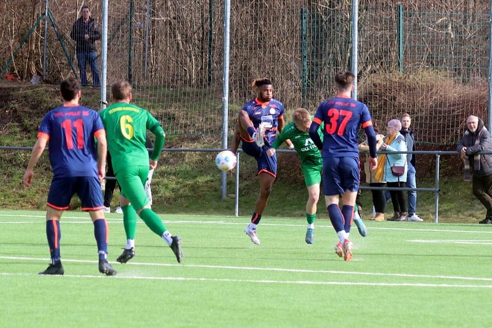 Auf dem Kunstrasen im Stadion am Zoo, an den die Gäste gute Erinnerungen hatten, der aber aufgrund des Sandes, so Jähnisch, wenig körperfreundlich war, setzten die Gäste durch Schüsse und Kopfbälle von Kapitän Marco Riemer die ersten Achtungszeichen (6., 14.). Danach verfehlte ein Direktschuss von Robin Ensenbach, der von Marlon Siegel in Szene gesetzt wurde, das gegnerische Gehäuse doch um einiges (22.). Erst nach 28 Minuten zwang der Kontrahent, dessen Eckbälle der FC sehr gut verteidigte, Maurice Geenen zu einem „Abtauchen“ beim Schuss von Ludwig Bölke. Es sollte die einzige, etwas anspruchsvollere Abwehrtat des Hünen in der Einheit-Box bleiben. Im Gegenzug fiel dann das „Tor des Tages“. Dass es nach einem Zusammenspiel von Riemer und Sven Rupprecht, dessen Eingabe der aus Emseloh gekommene Ukrainer Mykyta Shevtsov, einer von 16 Zugängen beim VfL ins eigene Tor abfälschte, markiert wurde, passte wohl ins Bild, das Dieter Hausdörfer, der Trainer der Hausherren, von seiner Mannschaft zeichnete: „Wir haben seit Ewigkeiten kein Spiel mehr verloren und in der Vorbereitung auch sehr gute Ergebnisse erzielt. Doch heute hatte ich den Eindruck, dass jeder von uns auf dem Platz zeigen wollte, dass er der bessere Fußballer ist.“ Halle schraubte danach sein Eckverhältnis um drei weitere Standards nach oben, konnte aber hier und auch beim Schuss von Exauce Bokunyungu, einem Schweden, der erst in der Winterpause zu den Hallensern wechselte, der den Geenen-Kasten verfehlte (43.), nicht für Zählbares sorgen. Aber auch der Schuss von Maximilian Schlegel einen Tick zuvor sorgte nicht für größere Aufregung beim 96er-Schlussmann Julius Schmid, einem Finnen mit Erfahrung von fünf hochkarätigen Vereinen.