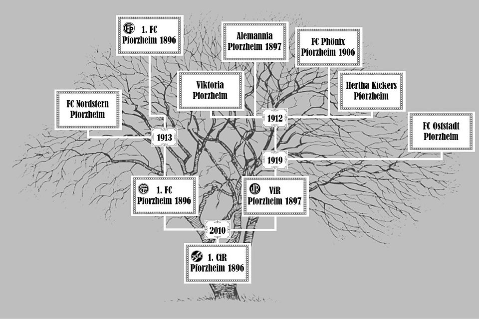 Inzwischen hat sich einiges getan. 1913 schloss sich der FC Nordstern Pforzheim dem 1. FCP an. 1897 wurde die Alemannia Pforzheim 1897 gegründet. Ihr schlossen sich 1912 Viktoria Pforzheim, FC Phönix Pforzheim 1906 und Hertha Kickers Pforzheim an. Als 1919 auch noch der FC Oststadt Pforzheim hinzukam, änderte man den Namen in VfR Pforzheim.
