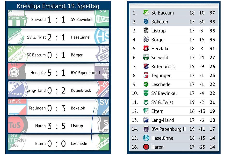 Doch Haren kam zurück. Helder Cutala verkürzte per direktem Freistoß auf 1:4 (69.). Marcel Conen traf per Kopf zum 2:4 (82.), ehe Mirco Husmann in der 90. Minute per Foulelfmeter sogar das 3:4 erzielte.