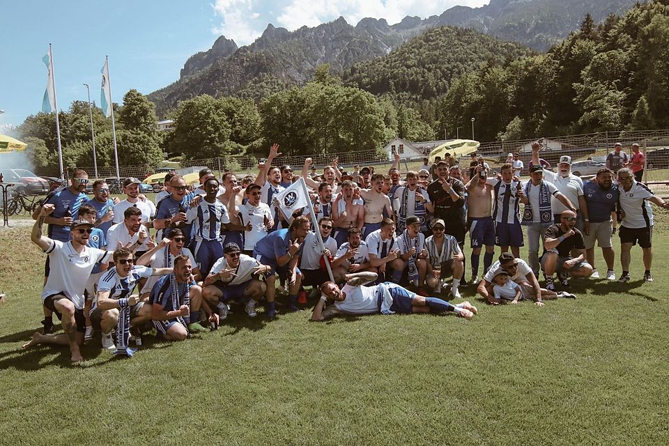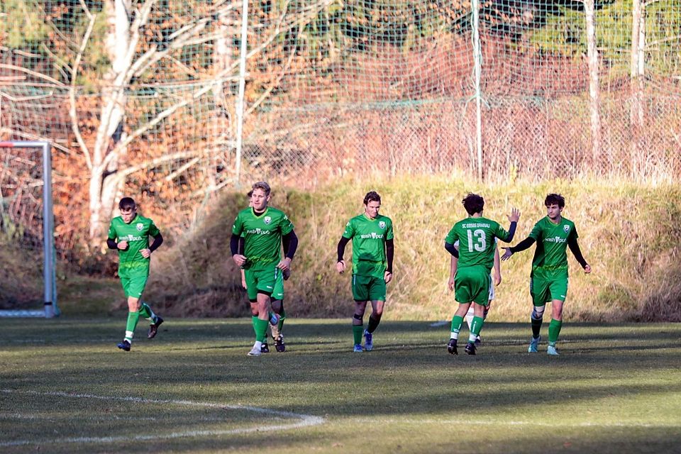 Der SC Eibsee Grainau bricht nicht gerade in Ekstase aus und präsentiert sich betont lässig beim Abklatschen. Dabei befindet sich Eibsee Grainau mit 22 Zählern im sicheren Tabellenmittelfeld der A-Klasse und punktete zuletzt gegen den direkten Konkurrenten aus Krün – da darf man auch mal jubeln.