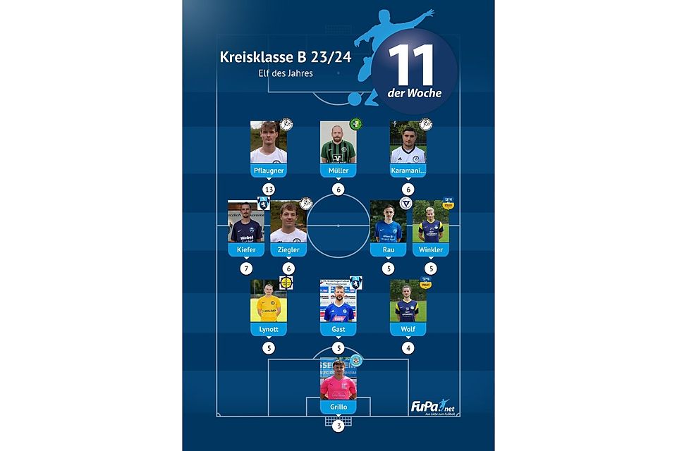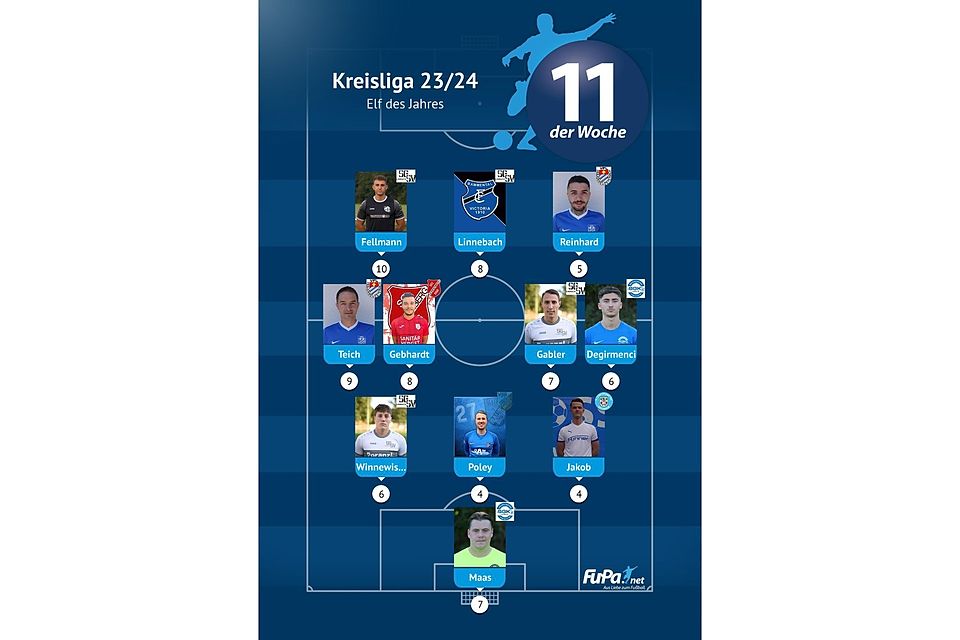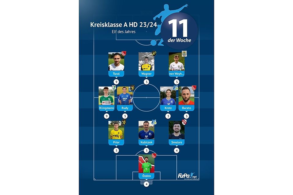 Die Liga-Bestwerte stellen Canay Tural vom FC Frauenweiler und Lenard Klingmann vom TSV Gauangelloch mit jeweils neun Spieltagsnominierungen auf.