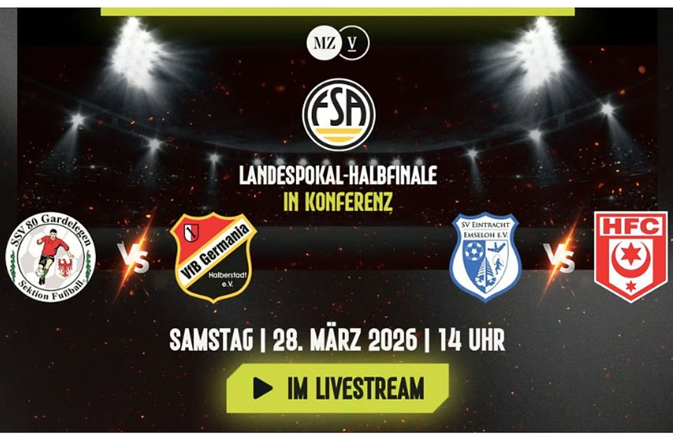 Wenn der SV Eintracht Emseloh in Lutherstadt Eisleben auf den Titelverteidiger Hallescher FC trifft und der SSV 80 Gardelegen den Oberligisten VfB Germania Halberstadt empfängt, sind die Volksstimme und die Mitteldeutsche Zeitung zum ersten Mal mit einer Konferenz dabei. Ein Novum für den Landespokal in Sachsen-Anhalt. Für die Fans und Interessierten am Bildschirm ist die exklusive Übertragung kostenlos.