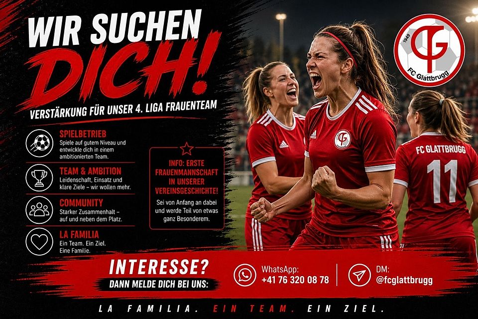 Für dieses ambitionierte Projekt suchen wir fussballerisch erfahrene Spielerinnen, die mit uns den Grundstein legen wollen. Wir bieten ein motiviertes Umfeld und grossen Zusammenhalt.