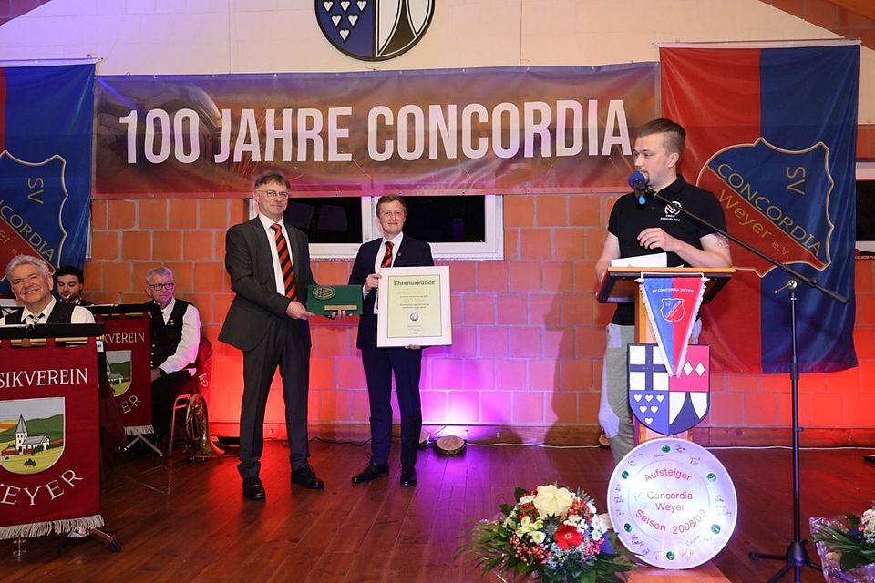 Seit 1926 steht der SV Concordia Weyer für Leidenschaft, Zusammenhalt und gelebte Dorfgemeinschaft. Generationen von Spielerinnen und Spielern, Trainerinnen und Trainern sowie unzählige ehrenamtliche Helferinnen und Helfer haben mit großem Engagement und Herzblut die Geschichte des Vereins geprägt. Was einst auf einfachen Wiesen begann, ist heute eine lebendige sportliche Heimat für Jung und Alt. „100 Jahre Concordia – Tradition bewahren, Zukunft gestalten. Seit 1926“ – so steht es treffend auf der Rückseite der Festschrift zum Jubiläum.