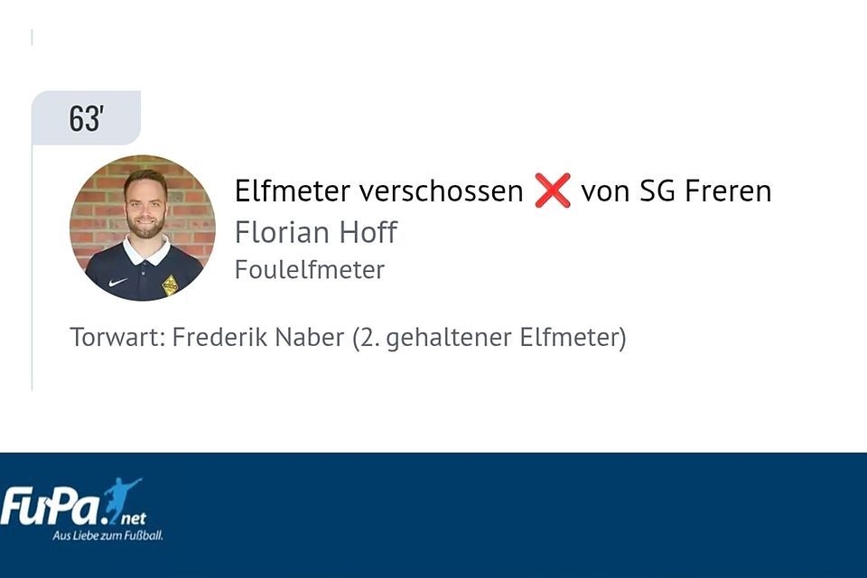 Die größte Chance für die Gastgeber ergab sich in der 63. Minute, als Freren einen Foulelfmeter zugesprochen bekam. Florian Hoff trat an, scheiterte jedoch an Torhüter Frederik Naber, der bereits seinen zweiten Strafstoß in dieser Saison parierte.