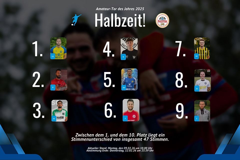 Ab sofort stehen die besten 25 Amateur-Tore 2025 für euch zur Wahl! Der Sieger wird in einem Community-Voting gekürt und darf sich auf außergewöhnliche Preise freuen – inklusive eines ganz besonderen Highlights.