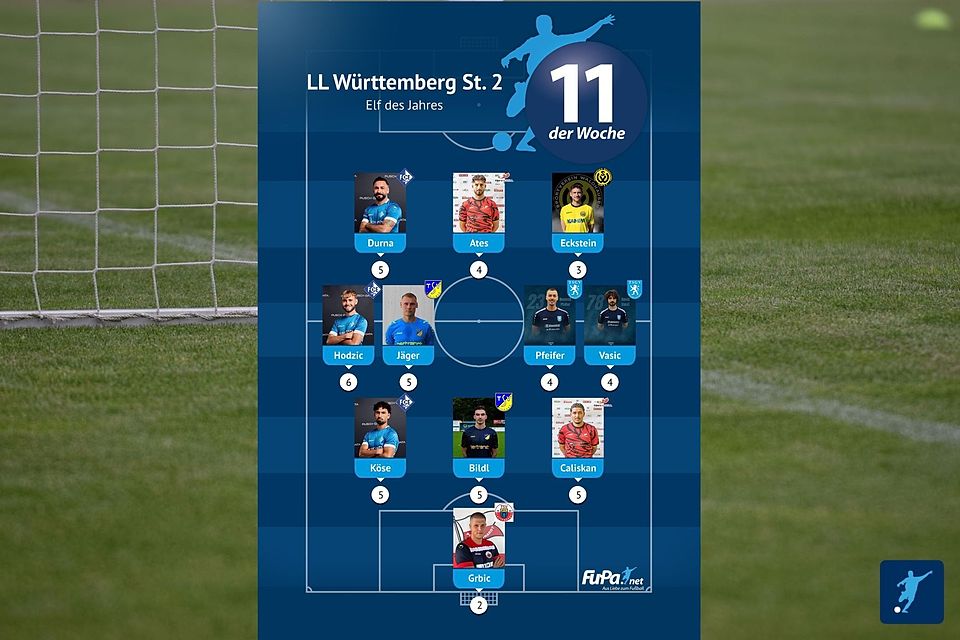 Woche für Woche präsentieren wir quer durch alle Ligen eine FuPa-Elf der Woche – sofern die Voraussetzungen durch eure Mitarbeit erfüllt sind. Dazu gehört vor allem, dass die Mannschaftsaufstellungen eingetragen sowie Tore und Assists eingepflegt wurden. Auch das Abstimmungsergebnis der FuPa-User für die besten Spieler des jeweiligen Teams fließen in die Auswertung ein.