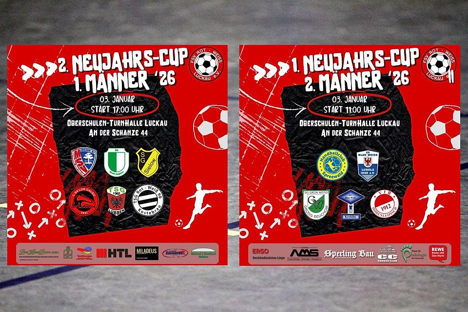Ein langer Abend, ein kompromissloser Modus, volle Konzentration bis zum Schluss: Der FSV Rot-Weiss Luckau bittet am morgigen Samstag zum 2. Neujahrs-Cup. Sieben Mannschaften messen sich ab 17 Uhr im Jeder-gegen-jeden-Format, jede Minute zählt, jeder Fehler wiegt schwer. Bereits ab dem Vormittag gehört die Halle dem Fußball beim Turnier der zweiten Mannschaft – Luckau erlebt zum Jahresauftakt einen intensiven, ehrlichen Hallenfußballtag.