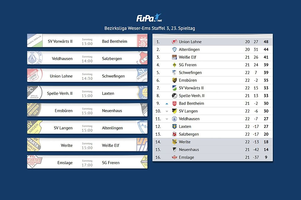 Sonntag, 14 Uhr in Veldhausen, ein Spiel irgendwo zwischen „bloß nicht unten reinrutschen“ und „einmal kurz durchatmen“. Salzbergen reist als 13. an, hat zuletzt zweimal gepunktet und hält damit den ersten Nichtabstiegsplatz fest im Blick. Veldhausen kommt mit Pokalfrust im Gepäck, hat sich aber unter der Woche immerhin einen Punkt erarbeitet. Kurz gesagt: Kein Spiel für Schönspieler, hier geht’s um Meter, Nerven und die Frage, wer am Ende ein kleines Stück entspannter in die Tabelle schauen darf.