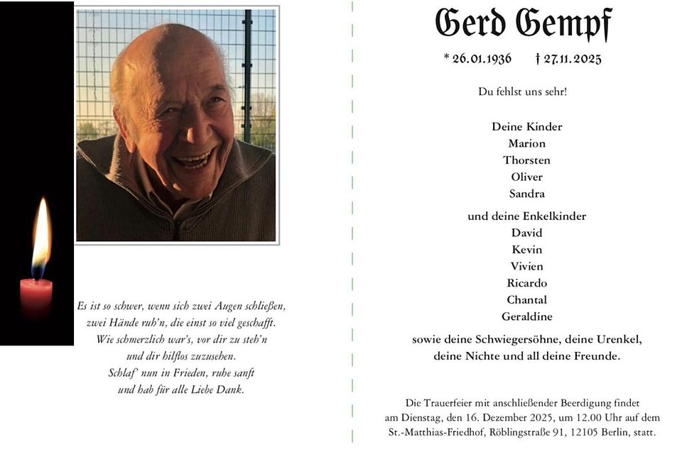 Mit großer Trauer, aber auch mit tief empfundener Dankbarkeit für ein langes und erfülltes Leben, nehmen wir Abschied von Gerd Gempf, in Schönberg und weit darüber hinaus besser bekannt als „Gerdi“.