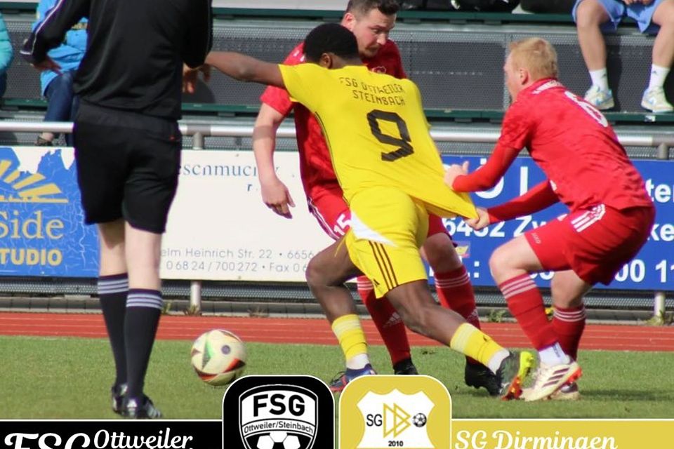 FSG Ottweiler-Steinberg II - SG Dirmingen-Berschweiler 4:0 (3:0). Eine ersatzgeschwächte Dirminger Mannschaft traf auf eine Ottweiler Elf, die einen absoluten Sahnetag erwischte. Verstärkt durch die beiden Verbandsligaspieler Niklas Hans und Tatsinkou N`Sangou hatte aber die FSG zunächst das Glück auf seiner Seite, als die Klesen-Elf in der Anfangsphase nur den Pfosten traf.
