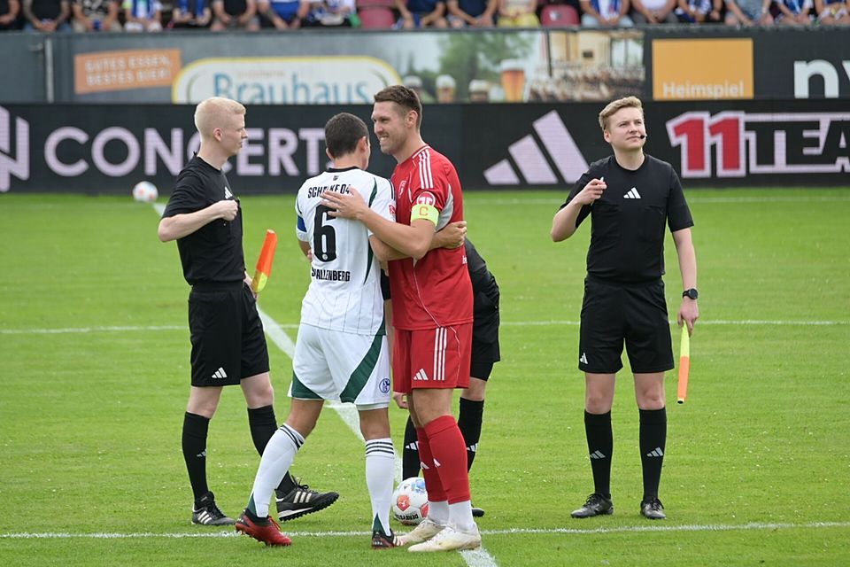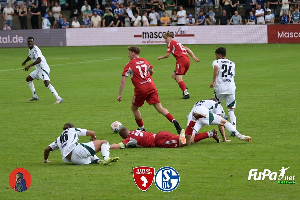 Schalke lief sich warm, das Publikum war sofort dabei. Auch die Auswahl Best of Grafschaft zeigte: Wir wollen hier nicht nur Spalier stehen. Und für einen Moment dachte man wirklich, das wird ein ausgeglichenes Spiel. War’s auch - für 24 Minuten.