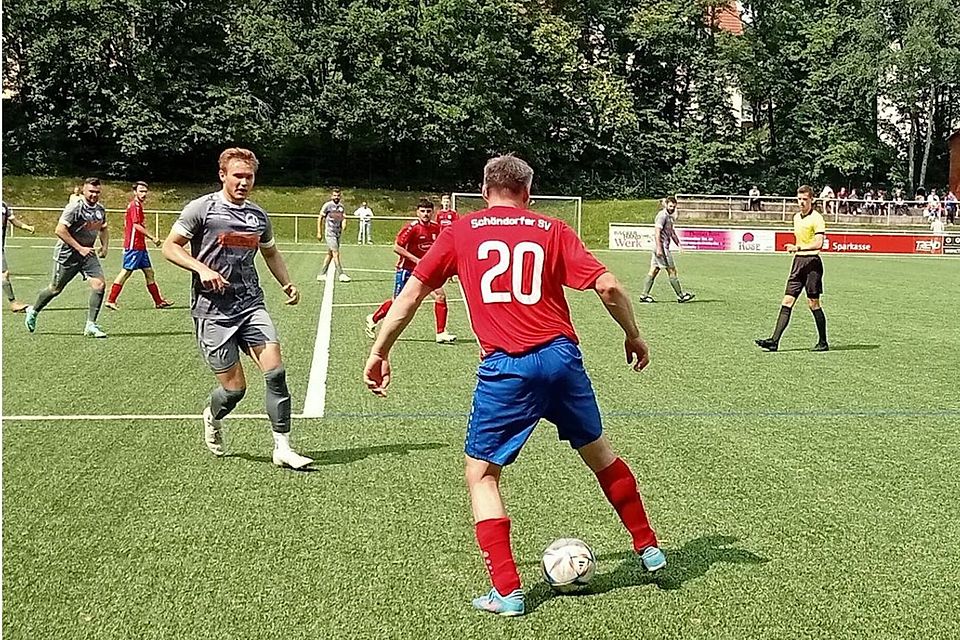 Auch nach Wiederanpfiff des souveränen Schiedsrichters Christian Möller (Rudolstadt) war das Team von TSV-Trainer Christoph Albrecht die spielbestimmende Mannschaft. Nach Zuspiel von Ben Schewior hatte Jonas König das 4:1 auf dem Fuß (47.). Moritz Hauser versuchte weiter fleißig zum Torerfolg zu gelangen (48.). Als auf der Gegenseite Tim Horbank aus 2 Metern per Kopf das Tor haushalten verfehlte, lag der Anschlusstreffer in der Luft (51.). Der TSV war also weiter gut beraten, das Spieltempo hoch zu halten. Das gelang auch mit einer üppig besetzten Bank. Bei einem Freistoß von Janek Hegewald zischte der Ball knapp an die Adressaten vorbei (55.). Nachdem ein starker Diagonalball von Jonas Körner den Abwehrblock der Gäste aushebelte, hatte Jonas König freie Bahn zum möglichen 4:1 (61.). Der sehenswerte Torschuss von Patrick Fiur aus der Drehung wäre einen Treffer wert gewesen (65.). Nach Zuspiel von Moritz Hauser in die Spitze stellte Philipp Vofrei zum zweiten Mal im Spiel seine Torjägerqualitäten unter Beweis - 4:1 (71.). Damit war der Wiederstand des Schöndorfer SV endgültig bei tropischen Temperaturen gebrochen. Nun rollte ein TSV-Angriff nach dem anderen auf das Gästetor. Dem eingewechselten Maxim Heilmann fehlten am zweiten Pfosten wenige Zentimeter an einem Kopfballtreffer (75.). In der 80.Spielminute belohnte sich Jonas Körner mit dem Tor zum 5:1 für seinen hohen Laufaufwand. Da er drei Minuten später aus Nahdistanz mit dem Pfosten Pingpong spielte, verpasste der TSV-Flügelflitzer jedoch knapp einen möglichen Doppelpack. Auch als der eingewechselte Mohammad Noor Alfreij Maß nahm, wollte der sechste TSV-Treffer im Spiel nicht mehr gelingen (85.). Es blieb beim 5:1-Spielstand. Der Sieg sollte den Männern vom Hainberg frisches Selbstbewusstsein geben.