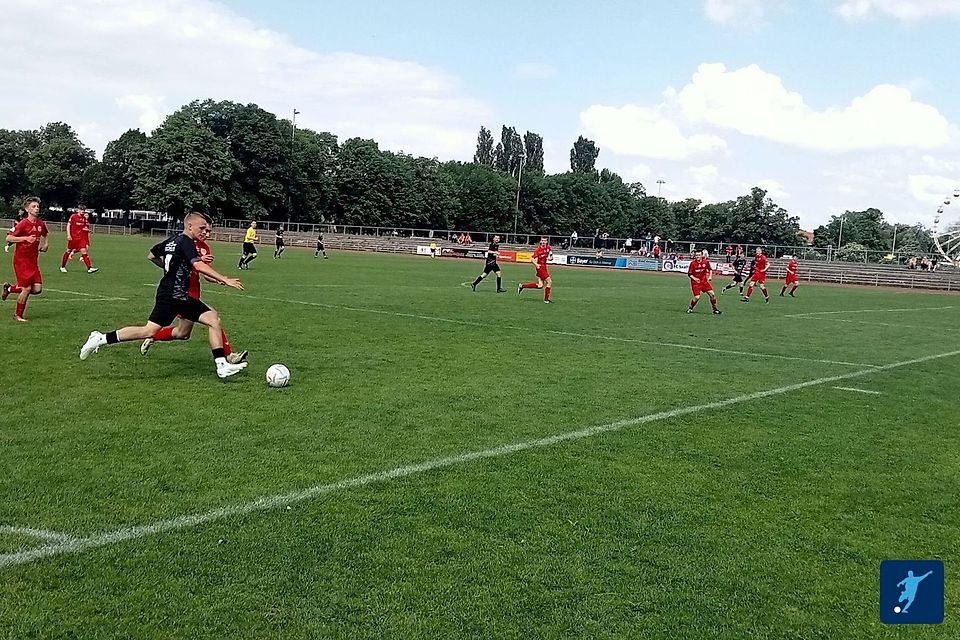 Die SG FC Saalfeld/SV Stahl Unterwellenborn II darf sich verdient Pokalsieger nennen und träumt neben der Meisterschaft, bei der in den letzten beiden Spielen ein Dreier reicht, sogar vom Double. Das Spiel begann mit einer Abtastphase und einigen Zweikämpfen im Mittelfeld. Chancen gab es zunächst keine. So dauerte es bis zur 11. Minute, bis der erste erwähnenswerte Torabschluss erfolgte. Ian Hoffmann versuchte es aus der Drehung, doch der Ball ging daneben. Hätte er den Ball durchgelassen, hätte Moritz Grebhan vielleicht mehr daraus machen können. Die SG ging mit der ersten Chance direkt in Führung. Ein Freistoß von Leon Bayer aus dem Mittelfeld überraschte Finn Dietzel völlig, und mit Hilfe der Latte ging der Ball ins Tor (1:0/25.). Stadtilm wirkte geschockt, doch die SG verpasste es, nachzulegen. Die Direktabnahme von Max Wolter nach einer starken Hereingabe (32.) sowie das schöne Zusammenspiel von Matti Stake (40.+4) blieben ungenutzt. Halbzeit.