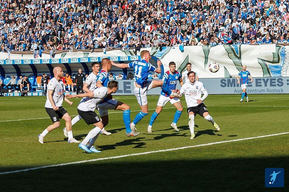 Die Gastgeber unter Trainer Daniel Brinkmann bestimmten die Anfangsphase klar, verzeichneten mehr Ballbesitz und setzten die Ulmer Defensive früh unter Druck. In der 26. Minute mündete diese Überlegenheit im Führungstreffer: Ein Freistoß von Kenan Fatkic aus dem Halbfeld landete bei Franz Pfanne, der per Kopf auf Emil Holten verlängerte. Dieser traf aus kurzer Distanz ins rechte Eck zum 1:0. Pavel Dotchev bilanzierte nach dem Abpfiff auf der Pressekonferenz: „Hansa Rostock macht genau das, was wir nicht gemacht haben, nämlich aus zwei Chancen zwei Tore.“ Sein Team fand erst nach dem Rückstand besser in die Partie.