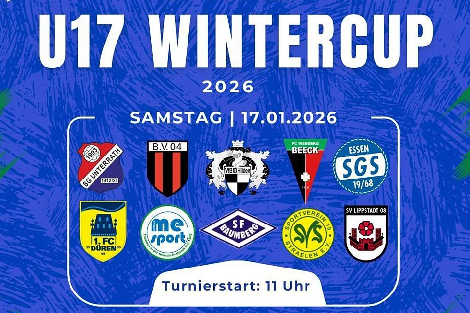 Die aktuelle Wetterlage verhindert den Jahresauftakt auf den Sportplätzen. Umso schöner, dass ein wirkliches Highlight mit dem U17-Wintercup am Samstag, den 17. Januar 2026, in der Halle Herrenhauser Straße stattfindet. Ab 11 Uhr treffen dort Nachwuchsteams verschiedener Spielklassen aufeinander, die für ein spannendes und abwechslungsreiches Turnier sorgen dürften. Das von der Fußball-Abteilung von Mettmann Sport organisierte Turnier endet gegen 17.30 Uhr.