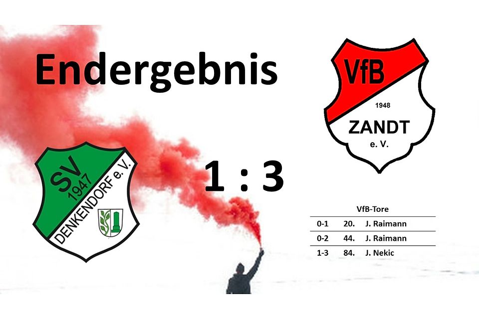 Trotz der aufgeheizten Atmosphäre behielt der VfB Zandt einen kühlen Kopf und ging in der 16. Minute in Führung: Justin Raimann verwandelte einen Freistoß direkt zum 1:0. Auch danach blieb die Begegnung umkämpft und emotional. Ihren Höhepunkt fand die Partie in einer Roten Karte für Denkendorfs Spielertrainer Flamur Bajraktari wegen Handspiels und der Verhinderung einer klaren Torchance. Kurz vor der Pause war es erneut Raimann, der ein Zuspiel von Benedikt Reitzer zum vorentscheidenden 2:0 verwertete.