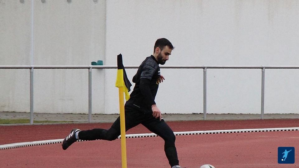 Chris Fritz von links flache Flanke auf Firas der einfach einschiebt